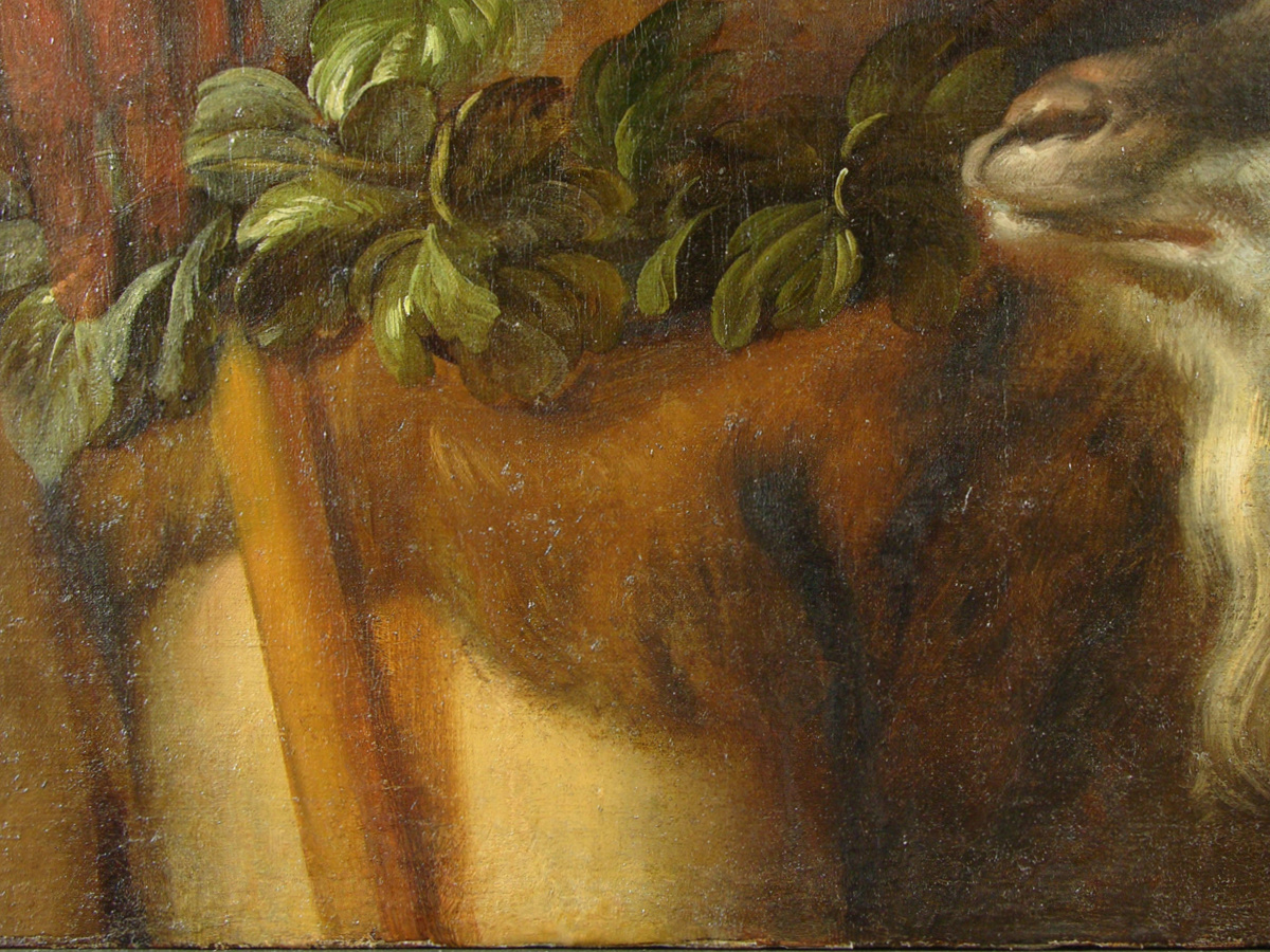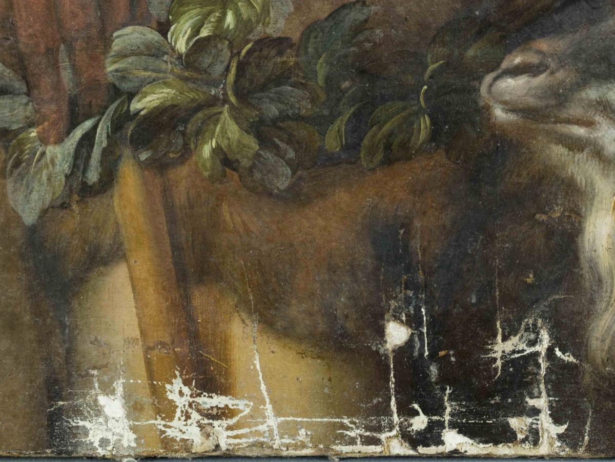 Es wurde eine Firnisabnahme durchgeführt. Die originale Farbigkeit ist nun wieder sichtbar geworden und die Kontraste und Tiefe der Malerei sind wieder erlebbar.